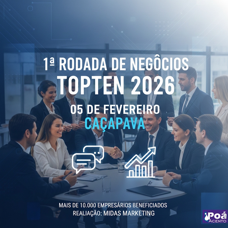 Caçapava, SP – Oportunidade para empreendedores do Vale do Paraíba e região. No próximo dia 5 de fevereiro, a cidade de Caçapava será o palco da 1ª Rodada de Negócios TopTen de 2026. O evento, que já se tornou referência para quem busca networking e expansão de mercado, chega à sua 116ª edição consolidando o sucesso do modelo criado pela Midas Marketing.